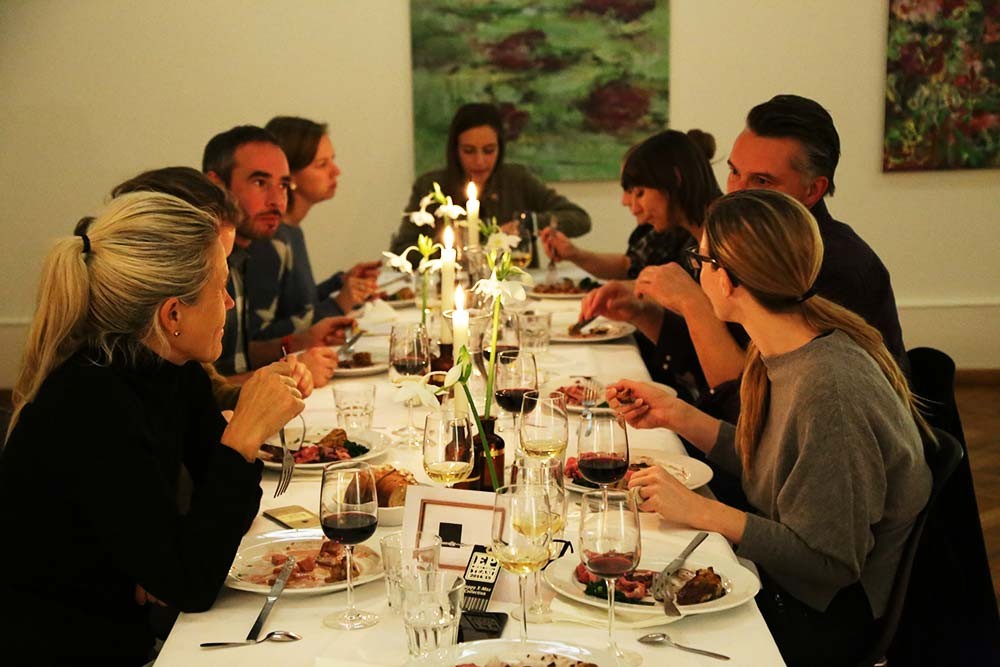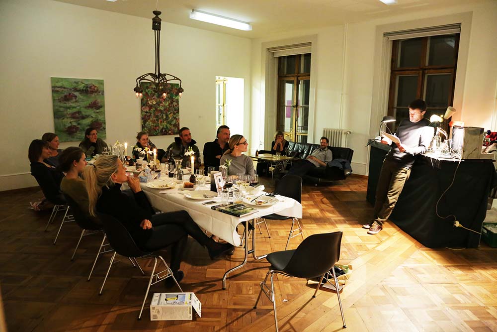Weil es draussen kalt ist, ist es drinnen wärmer. Weihnachtsfeier von Erdmannpeisker. Biel, Dezember 2014