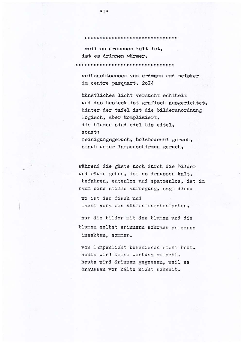 Weil es draussen kalt ist, ist es drinnen wärmer. Weihnachtsfeier von Erdmannpeisker. Biel, Dezember 2014